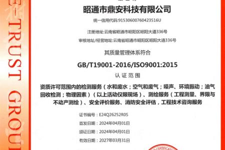 2003年11月10日,昭通市鼎安科技有限公司成立,初始主要從事第三方安全工程技術(shù)服務(wù),經(jīng)多年運(yùn)營(yíng),發(fā)展為多專業(yè)綜合科技平臺(tái),為社會(huì)提供多種專業(yè)技術(shù)服務(wù)工作。 現(xiàn)公司注冊(cè)資金為1200萬(wàn)元,公司法定代表人:毛衛(wèi)旭。公司主要業(yè)務(wù):安全評(píng)價(jià)、安全標(biāo)準(zhǔn)化評(píng)審、安全工程技術(shù)服務(wù);環(huán)境監(jiān)測(cè)、職業(yè)衛(wèi)生檢測(cè)、檢驗(yàn);法律訴訟及非訴訟服務(wù);司法鑒定、固定資產(chǎn)投資項(xiàng)目節(jié)能服務(wù);工程咨詢;工程測(cè)量測(cè)繪;安全教育培訓(xùn)等。是安全生產(chǎn)服務(wù)、安全教育培訓(xùn)機(jī)構(gòu),也是環(huán)境監(jiān)測(cè)和職業(yè)衛(wèi)生服務(wù)機(jī)構(gòu),同時(shí)也是綜合的檢測(cè)檢驗(yàn)、綜合科技平臺(tái)服務(wù)機(jī)構(gòu)。多年來(lái)為公、檢、法、司、軍、警、海關(guān)、仲裁、安監(jiān)、工礦商貿(mào)企業(yè)、社會(huì)團(tuán)體及個(gè)人提供多專業(yè)技術(shù)服務(wù)。