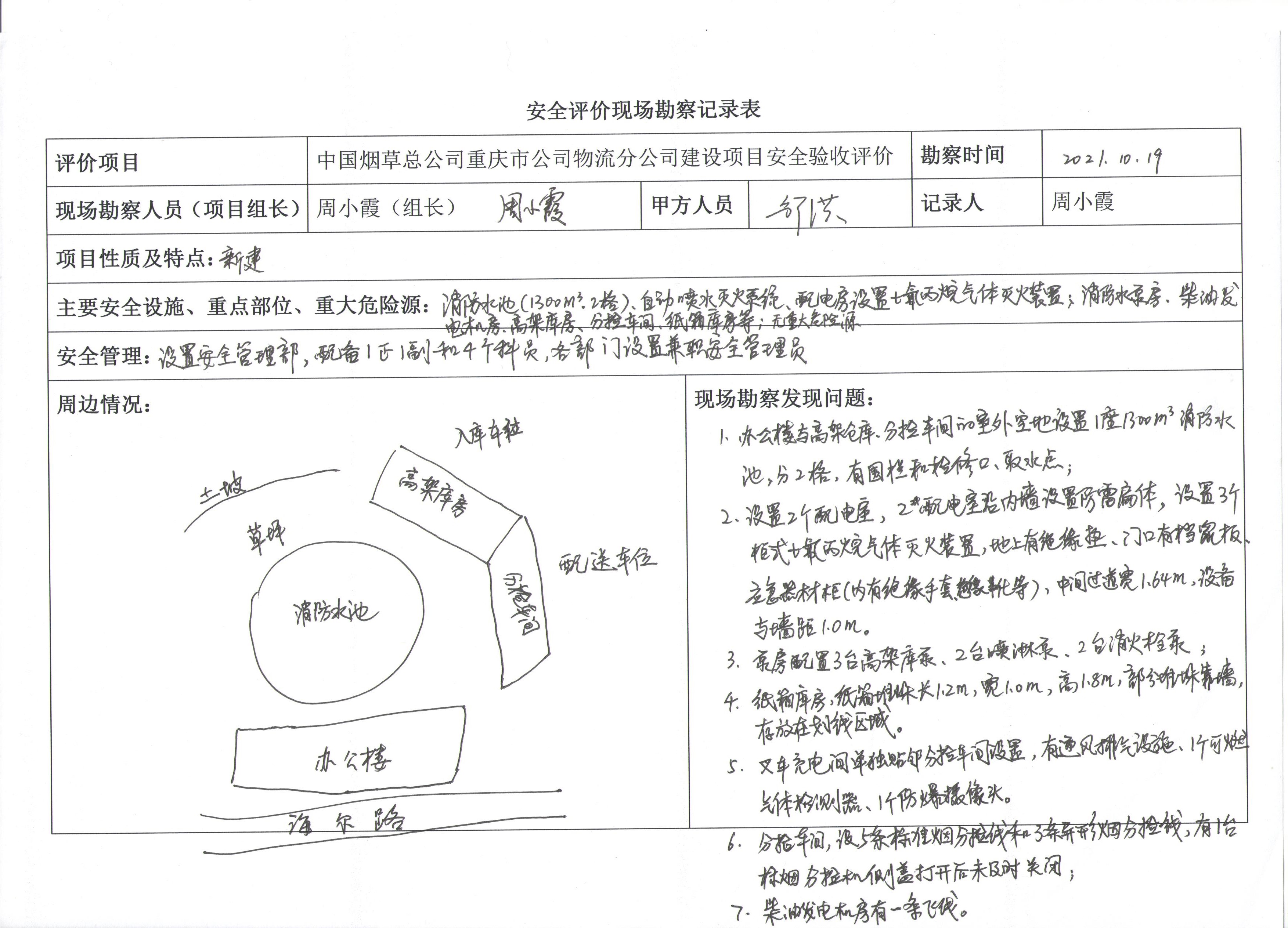 項目名稱 | 中國煙草總公司重慶市公司物流分公司江北卷煙配送中心易地技改項目安全驗收評價 | 合同 編號 | DA(渝)PJ-006 | |||||