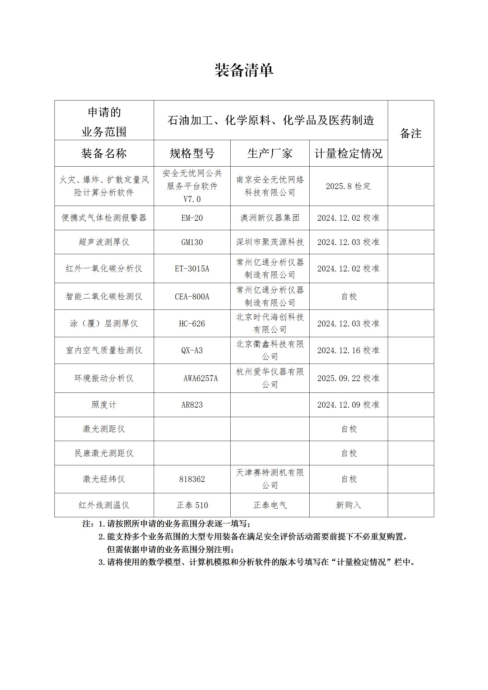 昭通市鼎安科技有限公司專業設備、設施一覽表